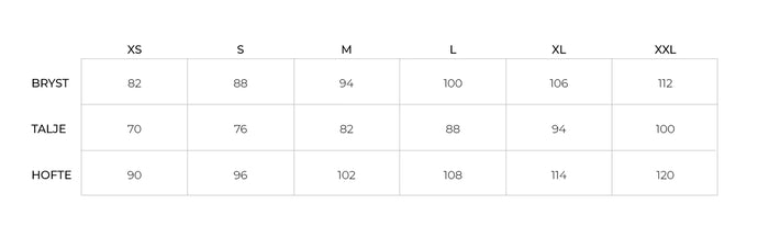 Vi designer tøj til kvinder i alle aldre og former og vigtigst af alt, så designer vi tøj til kvindelige former. Du vil måske opleve vores produkter en anelse rummelig i størrelsen, derfor vil vi gerne guide dig bedst muligt.