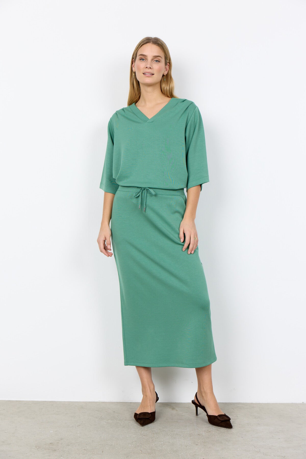 - Vores model er 176 cm høj og bruger str. medium