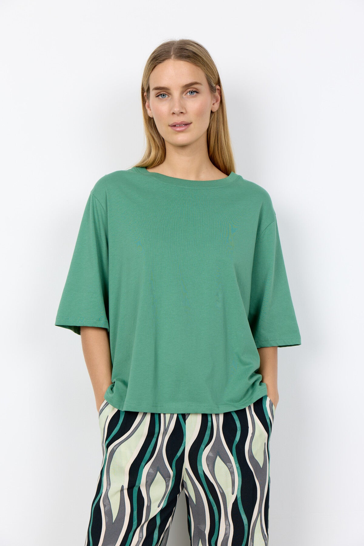 - Vores model er 176 cm høj og bruger str. medium